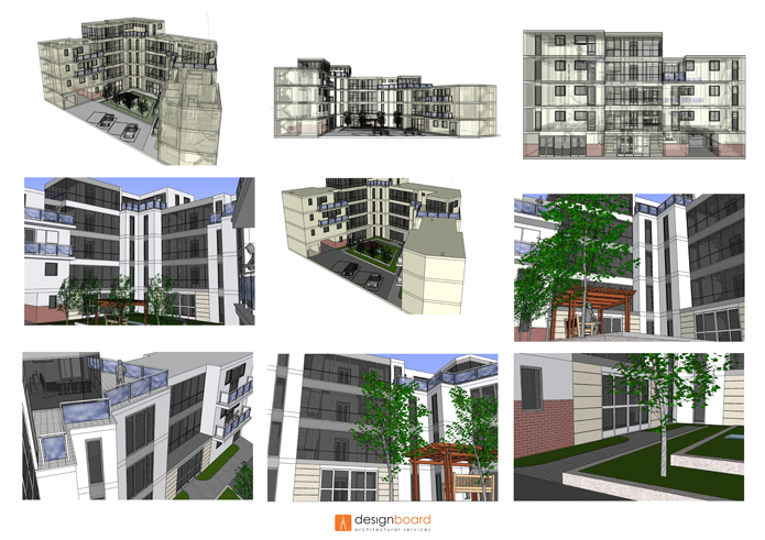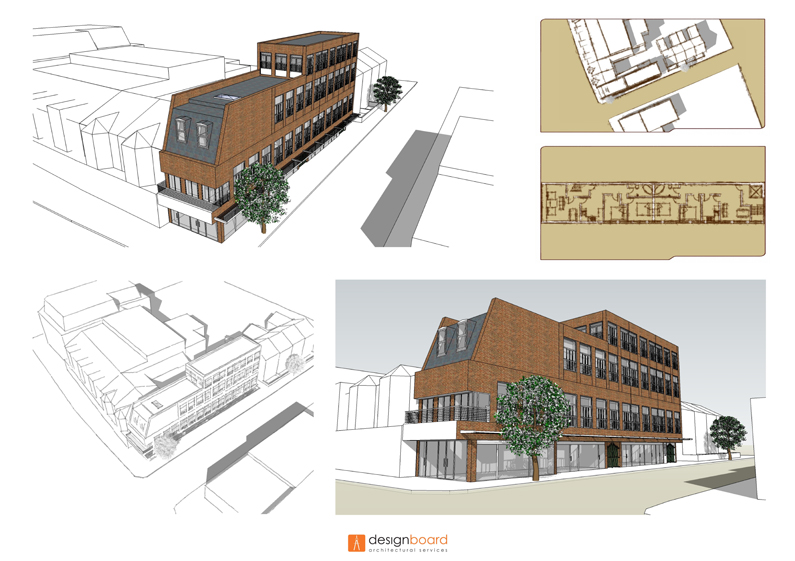 A new build creating 14 studio flats, created for the purpose of Planning and Marketing for Estate Agents.